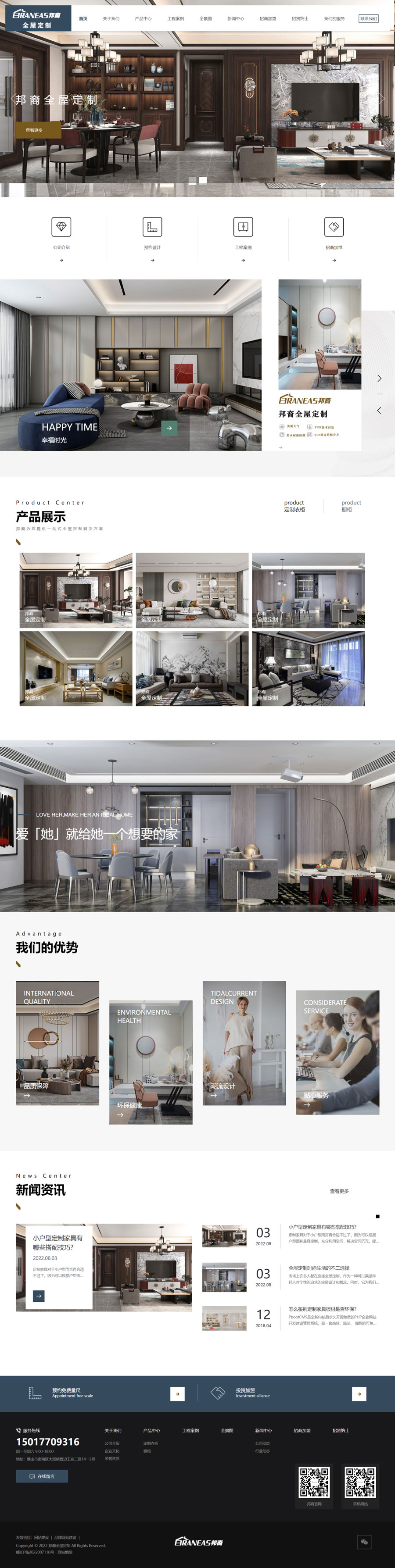 邦裔全屋定制品牌官網沖浪者科技定制開發,公司是一家集研發、銷售、生產、售后于一體的個性化全屋定制公司, 公司是一家秉持著做更懂中國人的定制家居品牌的企業,為了讓客戶有更好的家裝體驗,更多的產品選擇,邦裔全屋定制始終在這條道路上為之努力。 邦裔全屋定制自成立之來,以市場為導向,開展技術創新,構建邦裔全屋定制個性化定制智能制造模式...